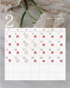 また、2月のご予約も残りわずかとなっており、ほぼ埋まってきております。